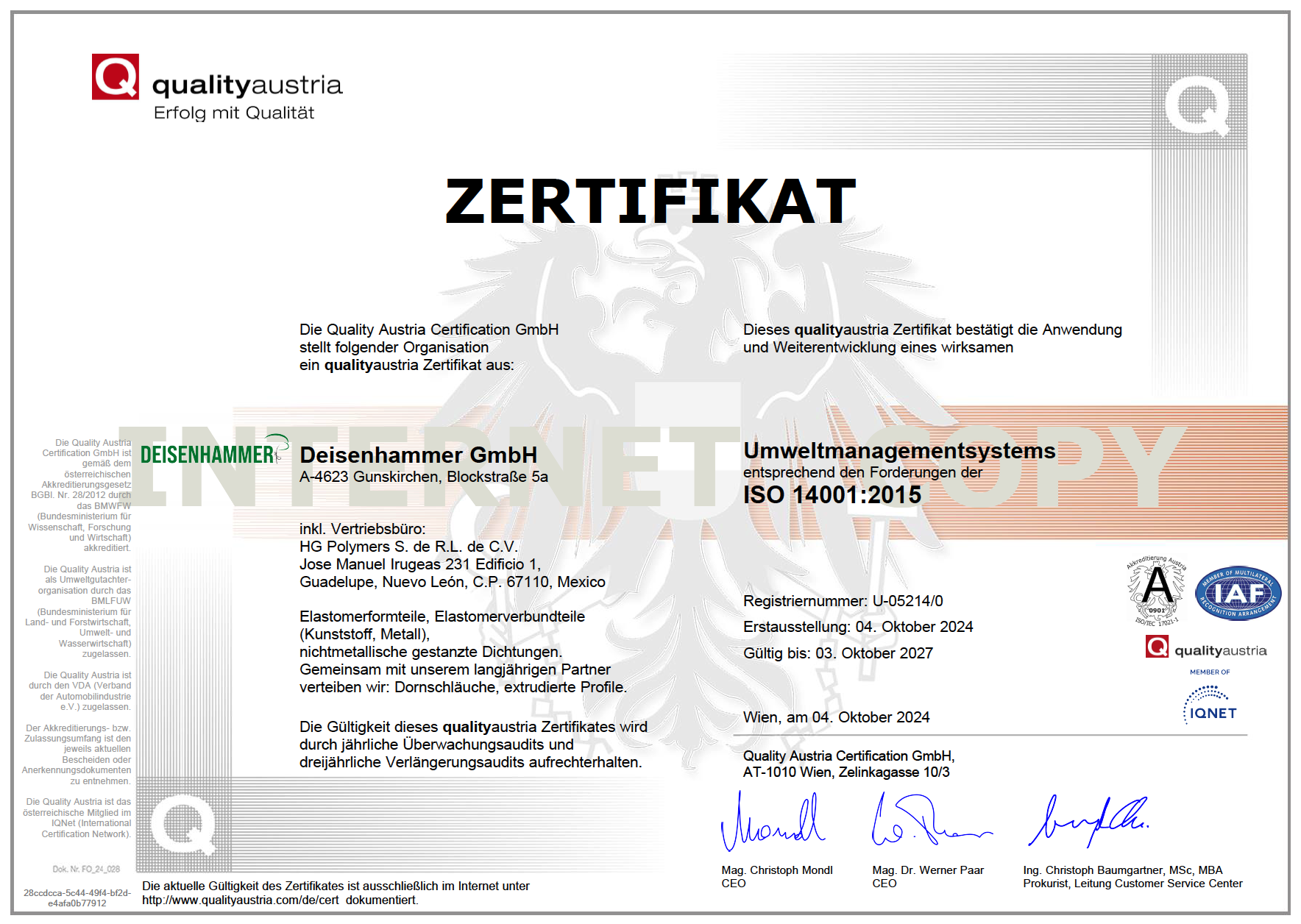 In our pursuit of excellence and maximum customer satisfaction, quality management is at the centre of our corporate philosophy at Deisenhammer.